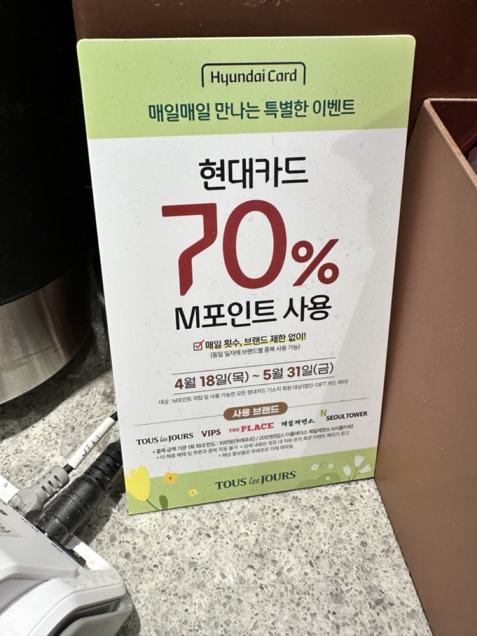 현대카드 쓰시는 분들은 M포인트 아끼지 마시고 뚜레쥬르로 바로 달려가셔야겠습니다.