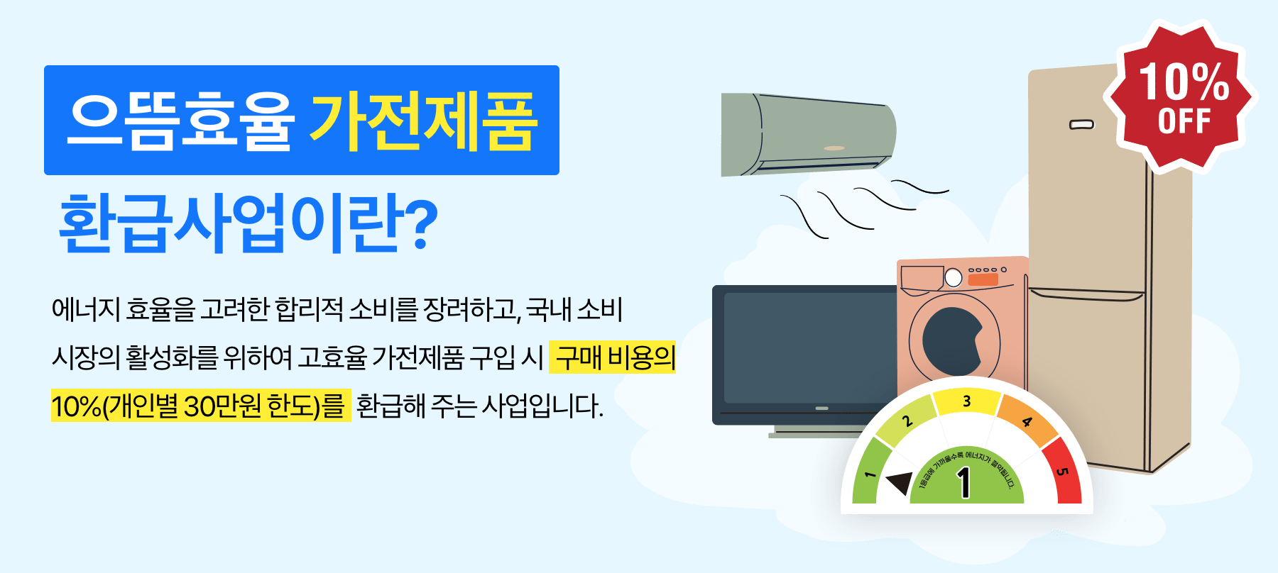 환급 내용: 대상 품목 구매 가격의 10%(개인별 30만원 한도)
