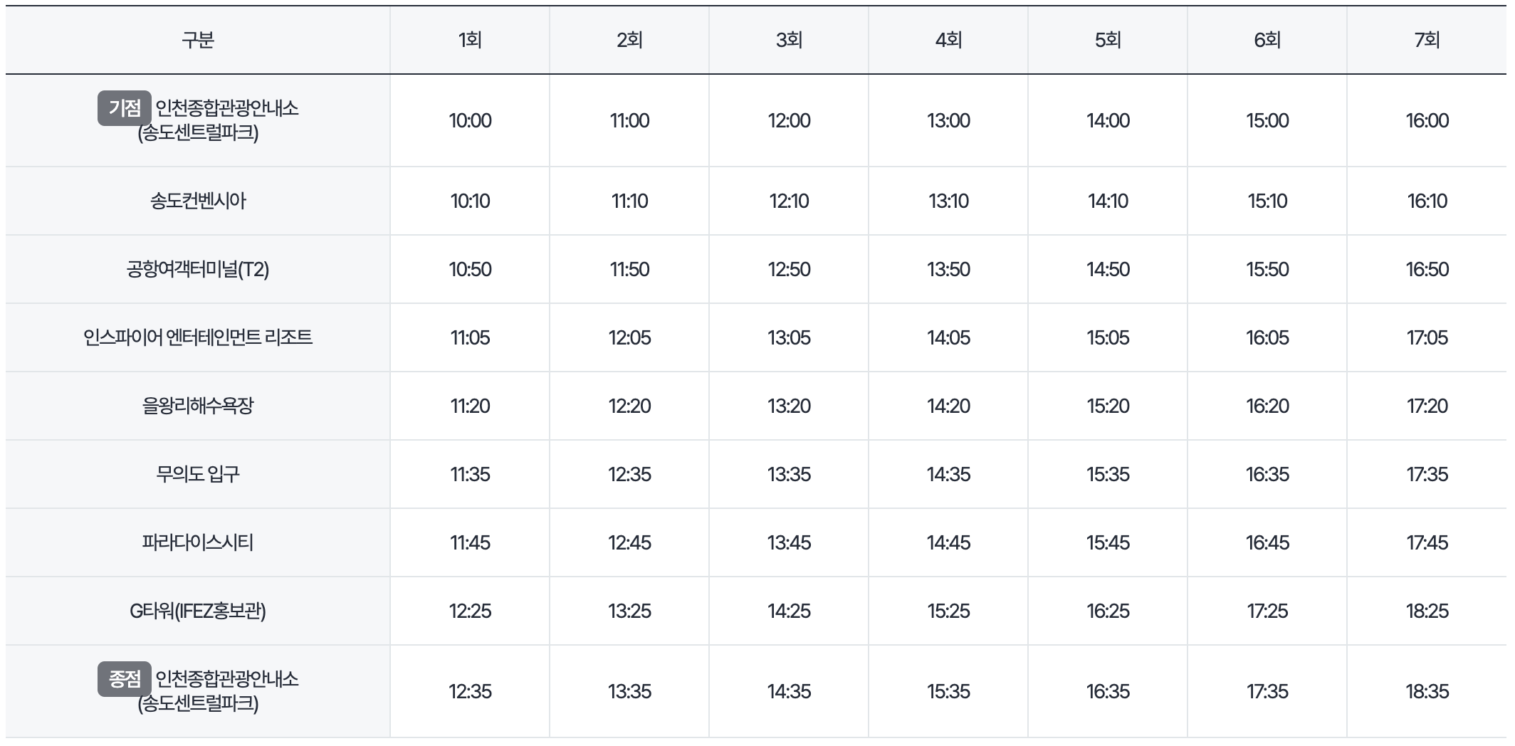 ※ 선착순 탑승이며, 만차 시 다음차 이용