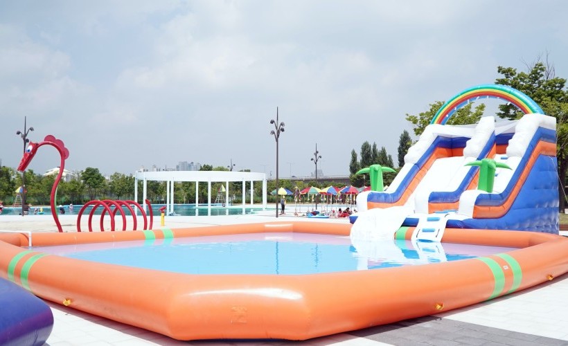시원한 물줄기가 쏟아지는 아쿠아링과 에어바운스,