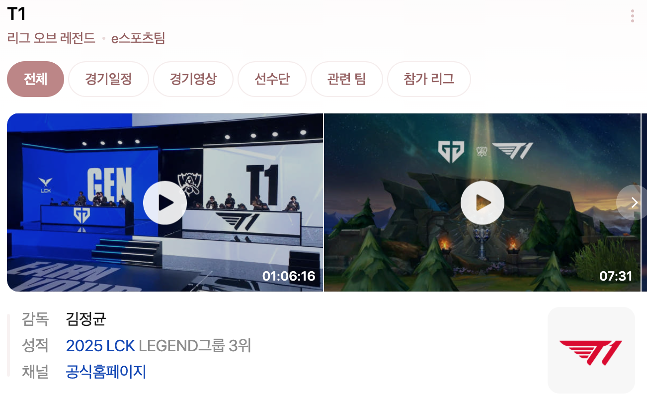 (페이커가 속해있는 팀이 한국의 T1입니다.)