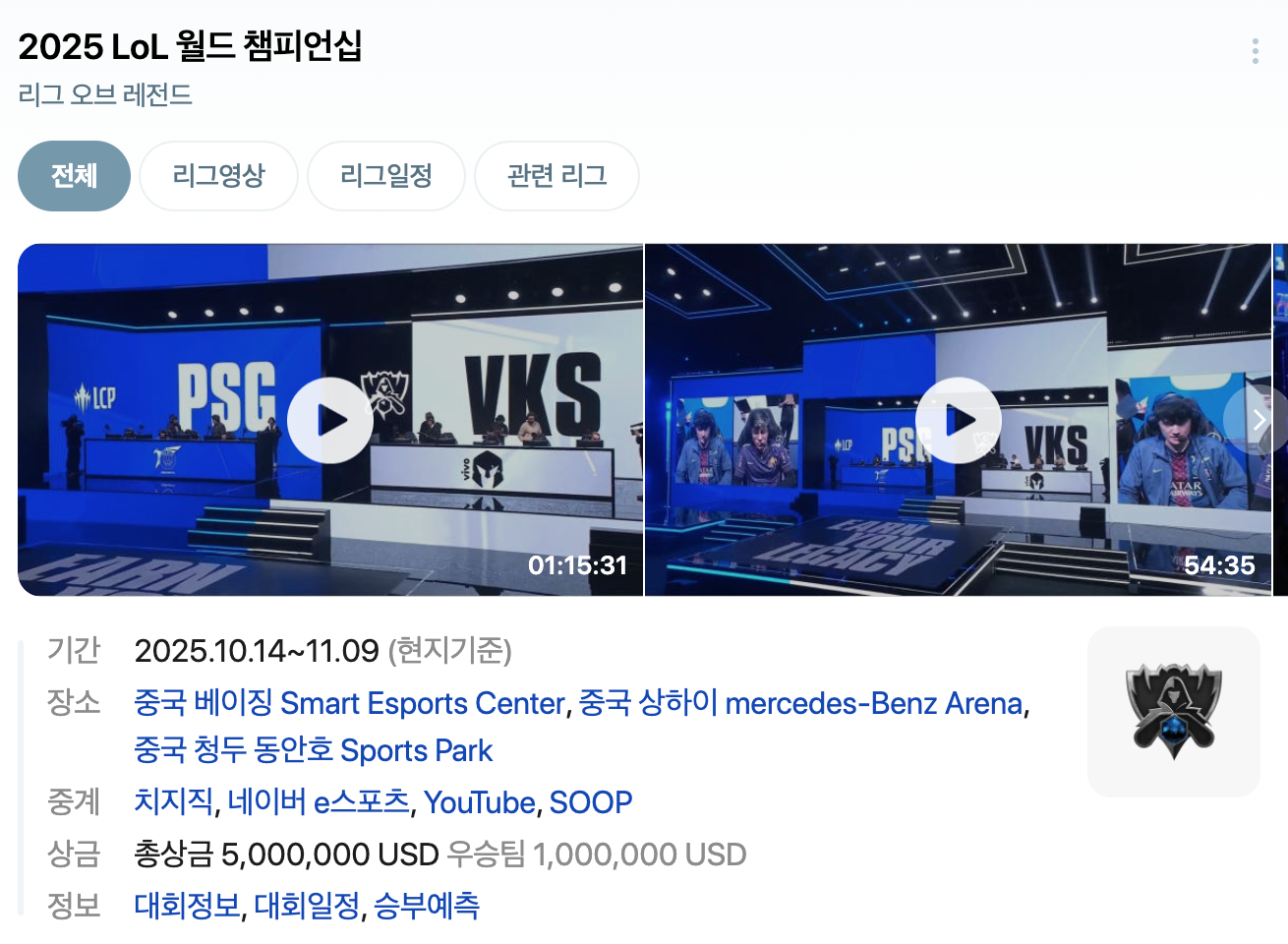 이번 롤드컵의 총상금은 약 500만 달러(한화 약 70억 원). 그중 우승팀이 차지하는 금액만 약 25~30%로, 한 팀이 가져가는 상금이 15억 원 이상에 달합니다. 구단 입장에서는 상금 외에도 브랜드 가치와 글로벌 팬덤 확대, 광고 수익 등이 중요한 요소입니다.